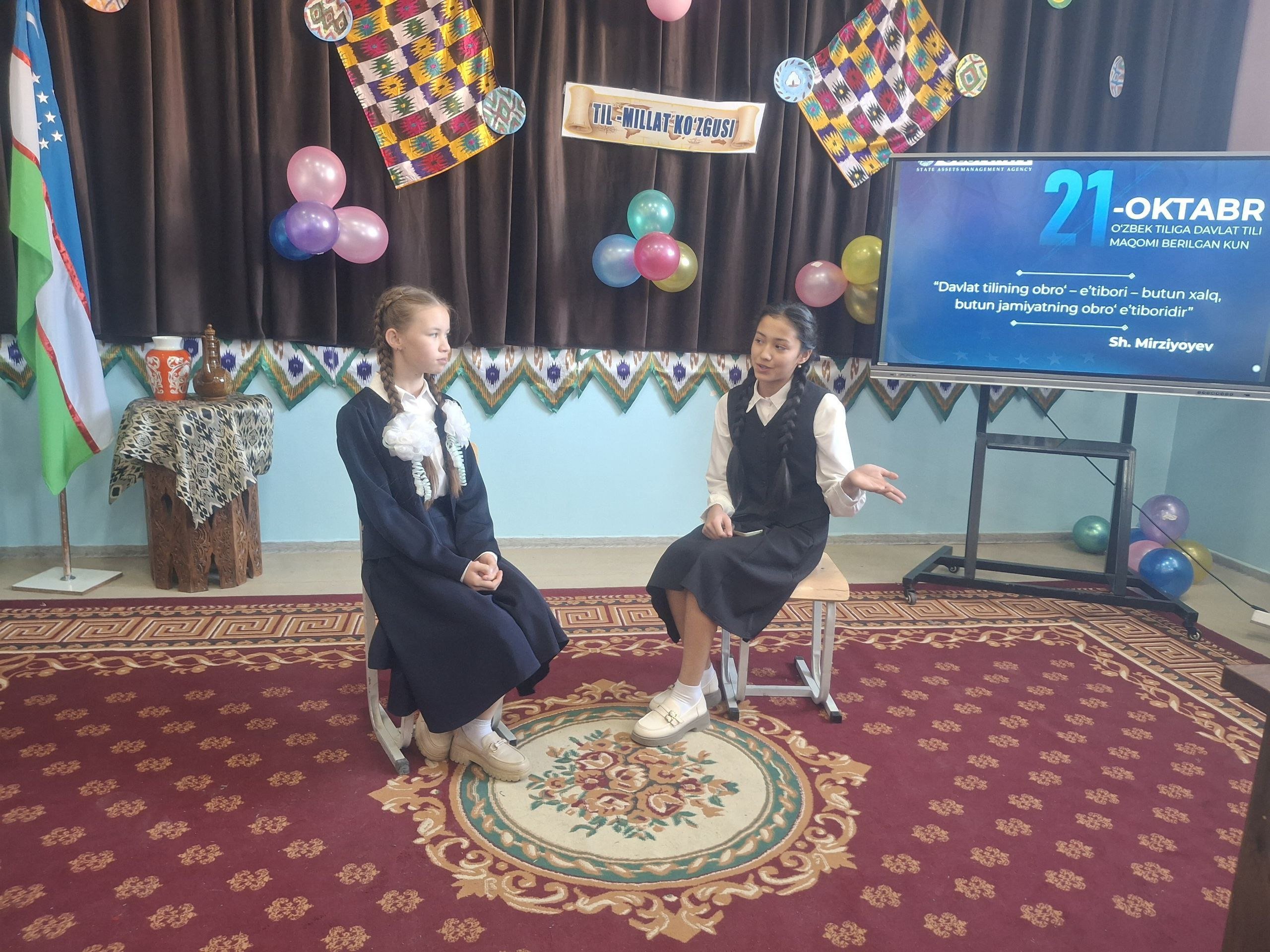 Xorazm viloyati Kurash mahorat maktabida 21‑oktabr kuni ona tilimizga “Davlat tili” maqomi berilganligi hamda uni hurmat qilish, rivojlantirishni rag‘batlantirish maqsadida “Til bayrami” nishonlanadi.